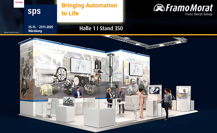 „Bringing Automation to Life“ lautet das Motto der SPS 2025, die vom 25. bis 27. November 2025 in Nürnberg stattfindet. Gemäß diesem Fokus präsentiert Framo Morat auf Stand 350 in Halle 1 Verzahnungsteile, Getriebekomponenten und elektromechanische Antriebssysteme, die den Fortschritt in der industriellen Automation vorantreiben. Mit unserem umfassenden Produkt-, Technologie- und Entwicklungsspektrum bieten wir unseren Kunden individuelle Lösungen, die die spezifischen Anforderungen des jeweiligen Einsatzbereichs erfüllen.